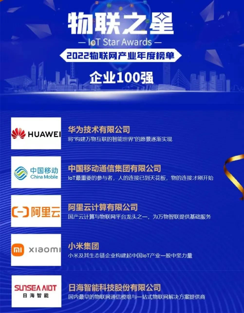 实力加冕!|乐鱼leyu公司智能荣登2022年度“物联之星”中国物联网企业100强